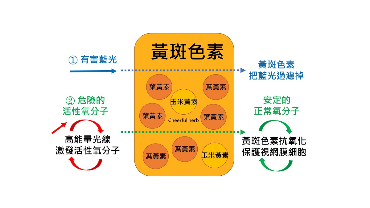 黃斑色素的2個保護機制,請看下圖:
